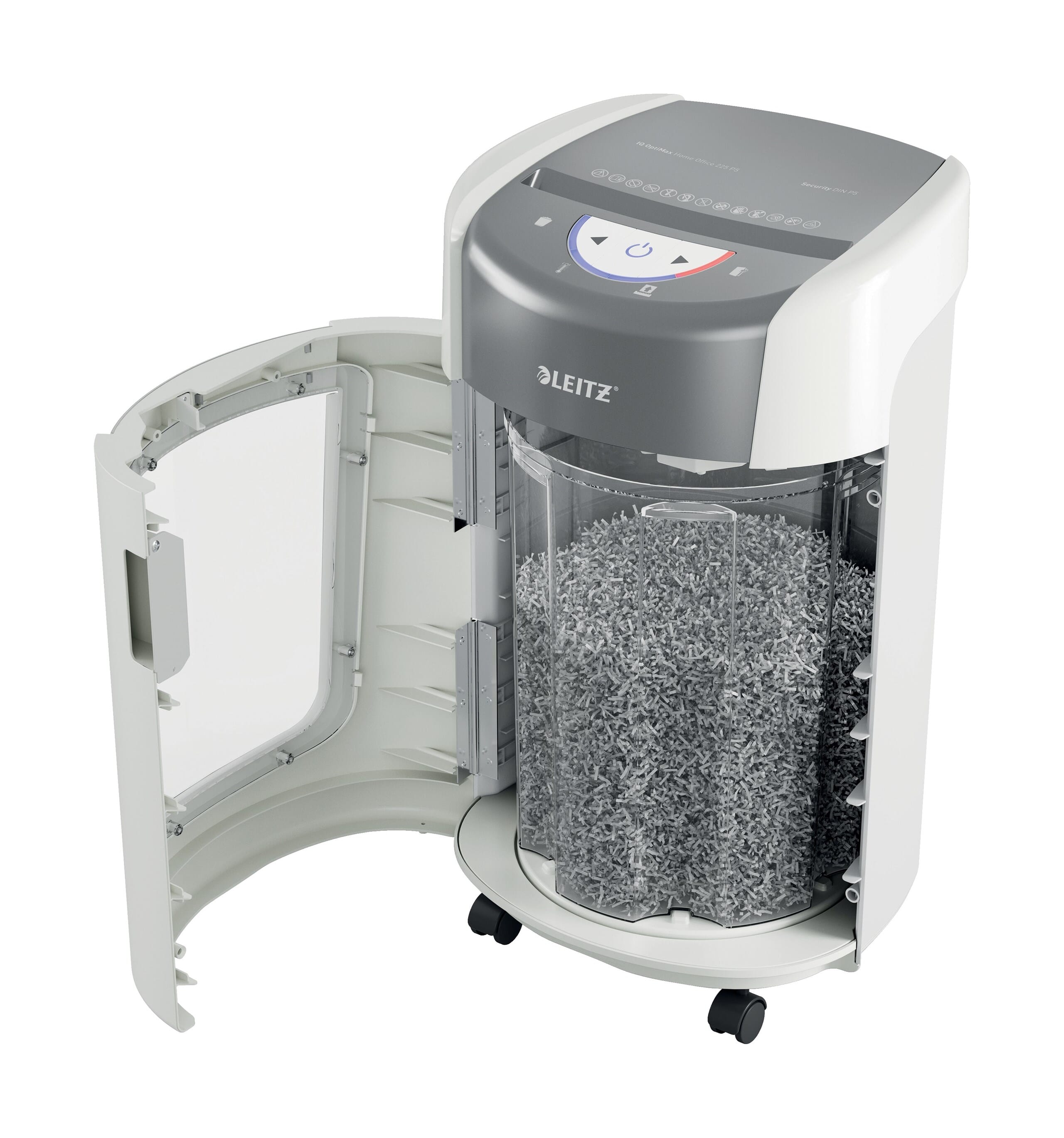Leitz IQ OptiMax 225 makuleringsmaskin gir en innovativ og elegant makuleringsløsning, samtidig som den sikrer eksepsjonell dokumentsikkerhet og trygghet. Denne P5-makuleringsmaskinen med høy sikkerhetsgrad makulerer enkelt opptil 6 stk. A4-ark om gangen til mikrokuttede biter. IQ OptiMax 225 har en unik roterende beholderteknologi (Bin Rotation Technology (BRT)), som effektivt maksimerer kapasiteten med +45 %