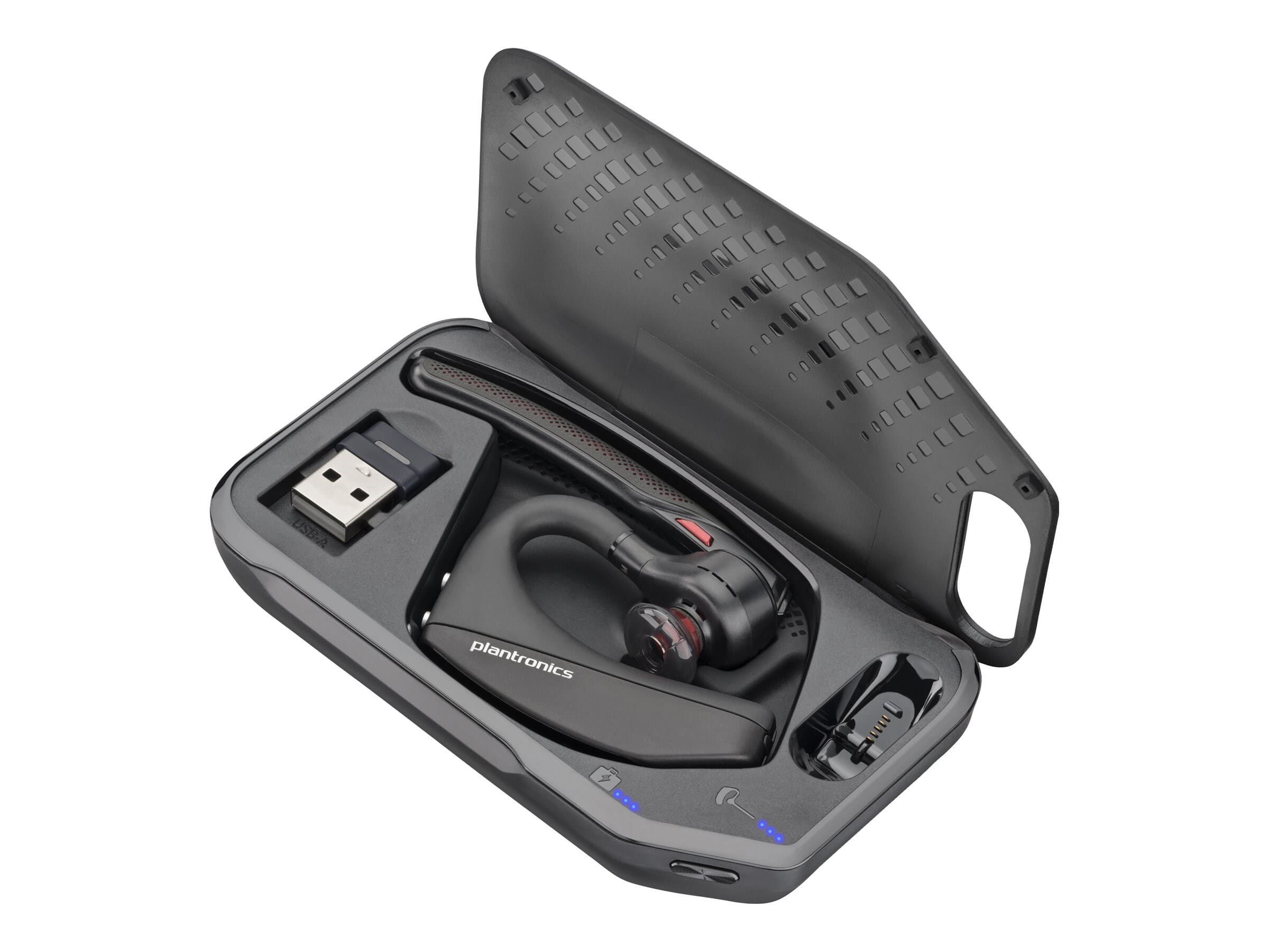Voyager 5200 kan brukes til mobil, nettbrett og PC. Tilkobling til datamaskin gjøres enkelt via den medfølgende USB-adapteren. Headsettet er Skype-sertifisert og optimalisert for Microsoft Lync. Integrert ladeetui medfølger.