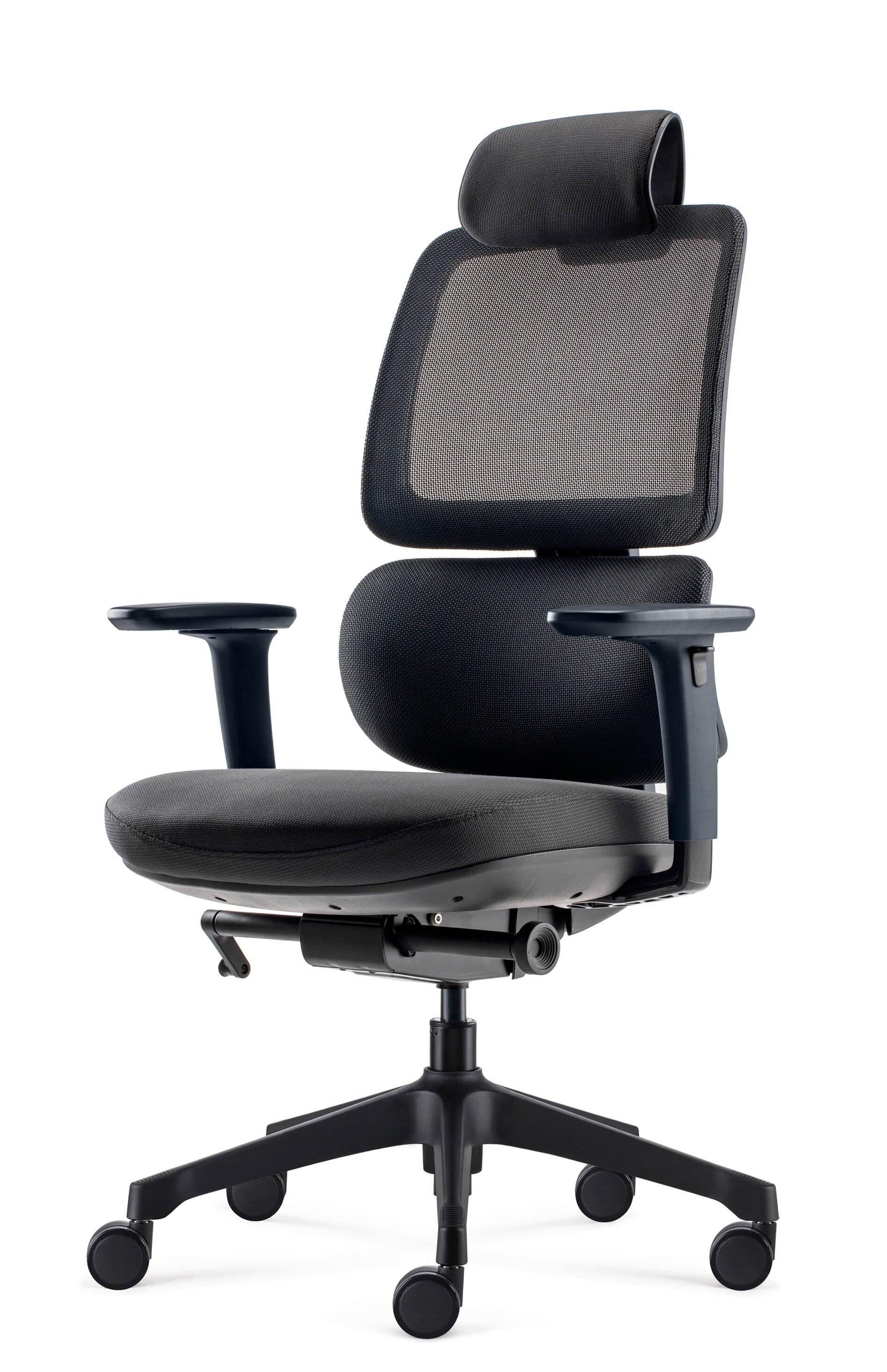 Setet og korsryggstøtten gir, med en kjerne av kaldskum og et slitesterkt stoff med en blanding av bomull og polyester, en utrolig lekker komfort til lange arbeidsdager. Stolens overflater er lette å rengjøre med en oppvridd klut og såpevann eller alkohol til overflatedesinfeksjon. De mange innstillingsmulighetene gjør det mulig for alle persontyper å finne seg til rette på stolen. Setets høyde og dybde og ryggens høyde kan justeres. Velger man å montere armlenet kan det også justeres i både høyde og dybde. Vår spesielle mesh-kvalitet gjør det ekstra behagelig for ryggen. Den spesielle vevningen i polyester uten trekk gir god støtte til den øvre del av ryggen, samt en ventilert komfort. Hjulene er uten skjermer og blir dermed ikke stoppet av støv og skitt fra gulvet.