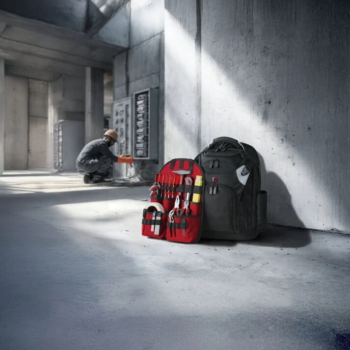 Sekken har polstret rom for opptil 17” laptop, romslig hovedrom med smart inndeling og en avtakbar verktøycaddy med mange organiseringslommer. Med robust konstruksjon, hard bunn, låsbare glidelåser og komfortable skulderstropper er dette en pålitelig arbeidspartner – både på verkstedet, på farten og ute på oppdrag.
