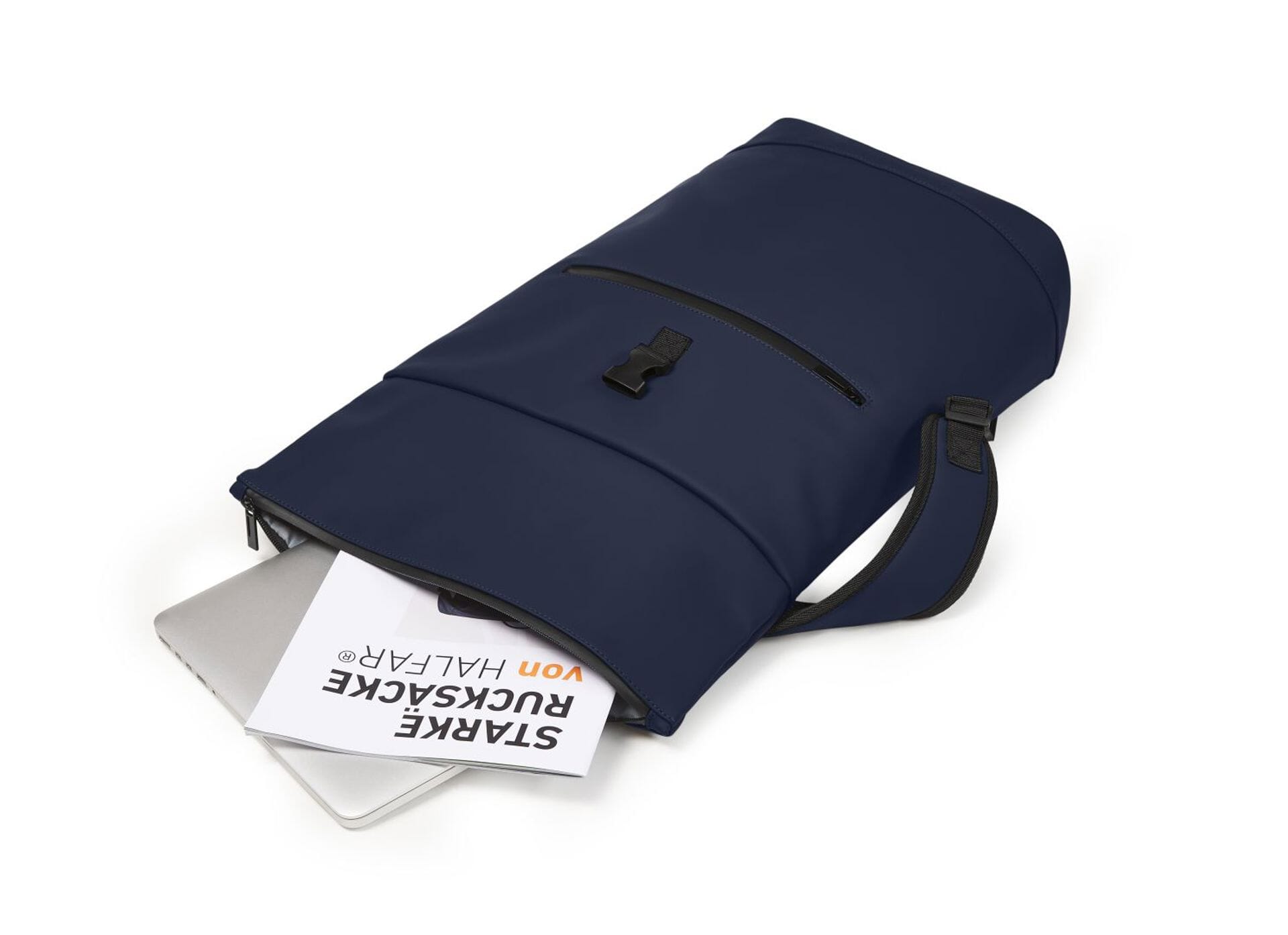 Elegant og urban PC-sekk i vannavvisende stoff. Hovedrom med forsetrket bunn, polstret rom for Laptop. Lomme med glidelås foran, regulerbare polstrede stropper og håndtak.