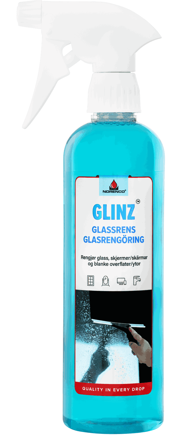 Glinz er en glassrens som ikke etterlater film eller skjolder.