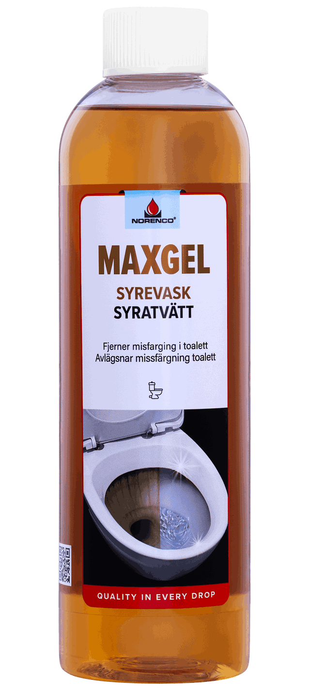 Påføres opp under spylekanten og la det virke til misfargingen er borte, ca. 5-20 sekunder. Ved mineralavleiringer kan MaxGel virke i 1-4 timer. Uten fosfat