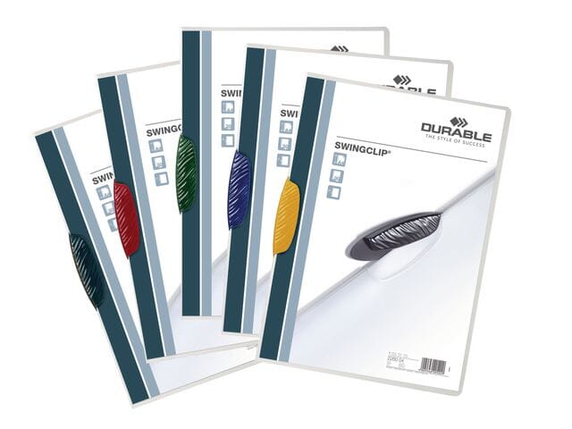 Swingclip®-mappen er laget av polypropylen og er en gjennomsiktig mappe med farget klips. Hver av mappene har en brukervennlig dreieklips som du dreier utover når du skal sette inn eller fjerne dokumenter, og deretter låses ved å dreie innover. Mappen har en kapasitet på opptil 30 A4-ark og passer like godt til hjemmebruk, skolearbeid og på kontoret.