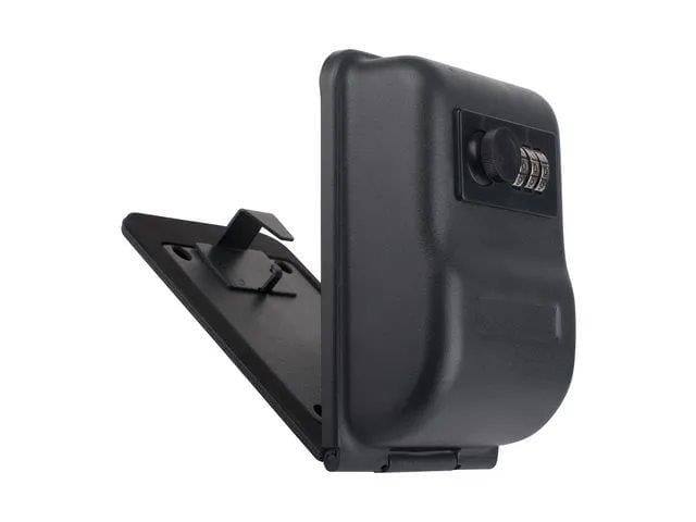 Pavo nøkkelsafe gir deg kontroll over husnøkler, hengelåsnøkler, bilnøkler etc. på et sikkert sted som enkelt kan monteres på veggen. - 3-sifret kombinasjon - Matt svart finish - Mål: 145 x 100 x 57mm.