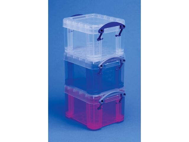 Hold ting pent og ryddig med disse kompakte boksene fra Really Useful Box, som tillater deg å lagre saker uten å ta opp mye plass. Boksene passer fint sammen og kan stables uten problemer. De er laget av sterk polypropylen, er vannbestandige og derfor nyttige for arkivering og lagring. Den gjennomsiktige boksen kommer med et låsbart lokk som kan løftes av, som øker brukervennligheten og forsikrer deg om at gjenstandene ikke blir støvete eller faller ut. Håndtakene er enkle å ta tak i og man kan derfor løfte og bære boksen enkelt.