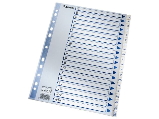 Esselte®-filmapper for indekskort er laget av tykk papp med en varig mikrofilm for maksimal holdbarhet og en elegant estetikk. Hvert sett inneholder alfabetiske ark med lettleste og store faner med rikelig med plass til å skrive på. Disse belagte indeksmappene av papp gjør organiseringen av dokumenter og notater rask og enkel. I tillegg sikrer de plastforsterkede ringhullene at mappene passer i et bredt spekter av almanakker og ringpermer for å gjøre arkivering enkelt.