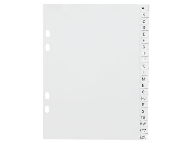 Produsert i polypropylen plastUniversalhullet og hvitt alfabetregister på høyre sideUten forsideark0,12mm. tykkelse