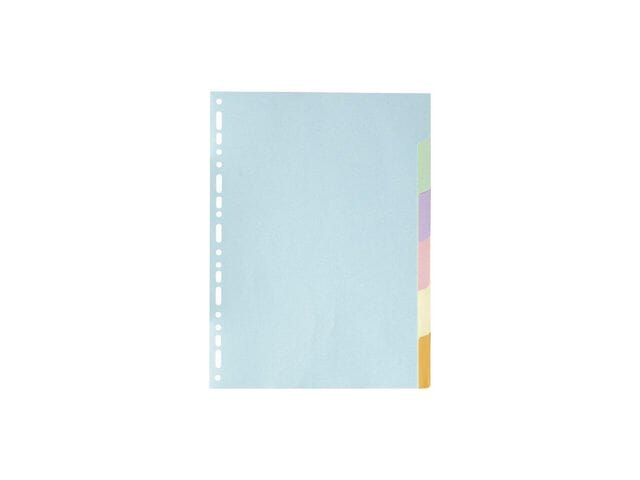 Laget av 100 % resirkulert materialeBlue Angel-sertifisertDelt inn i 10 delerKompatibel med papir av A4-formatMål: 225 x 297 mmPapirvekt: 170 g/m²Farge: Assorterte pastellfarger
