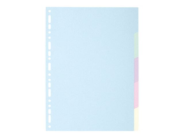 Laget av 100 % resirkulert materialeBlue Angel-sertifisertDelt inn i 5 delerKompatibel med papir av A4-formatMål: 225 x 297 mmPapirvekt: 170 g/m²Farge: Assorterte pastellfarger