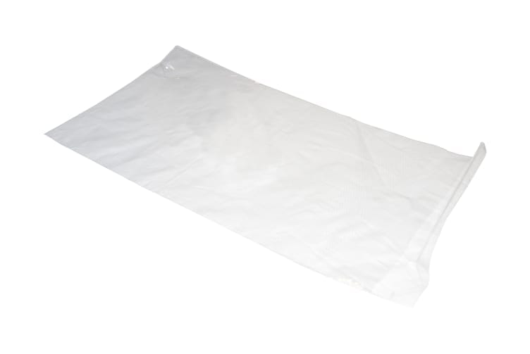 Plastpose, blokket i topp med opphengshull og rivekant.