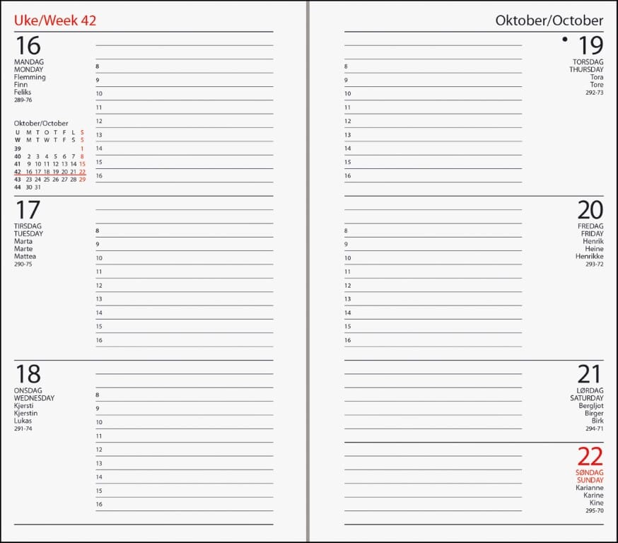7.sans Datum er den kalender som flest personer ønsker å bruke. Gjør dine personlige notater hver dag. En lommekalender med en uke på to sider gir deg masse plass hver dag. Samtidig er den kompakt å ha med seg. Kan velges som spiralisert eller fast innbundet. Flere varianter med ulike utrykk skulle gi en variant for de fleste. Inneholder mye informasjon, samt atlas. Alle 7.sans produkter er miljøsertifisert etter anerkjente internasjonale standarder slik at de minst mulig påvirker vårt felles ytre miljø. Sidestørrelse: 8,7 x 15,3 cm Hjørneperforering 60 gr papir En uke på to sider Norsk Klokkeslett fra-til: 08:00-16:00 Røde søndager og helligdager Årsoversikt innværende og neste år Månedoversikt inneværende og neste år Notatsider og infosider 16 sider atlas Norske navnedager Norske helligdager