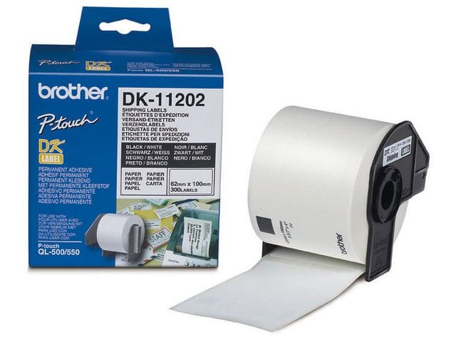 Disse Brother DK-11202-forsendelsesetikettene har perfekt størrelse for pakker og leveres med 300 etiketter per rull.