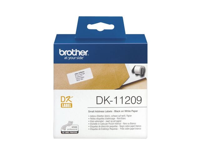 Disse små Brother DK-11209-adresseetikettene har perfekt størrelse for konvolutter og små pakker og leveres med 800 etiketter per rull.