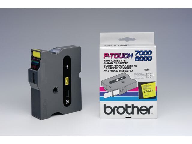 Denne laminerte Brother TX-651-tapen er velegnet for daglig bruk med en rekke Brother P-Touch-etikettskrivere.