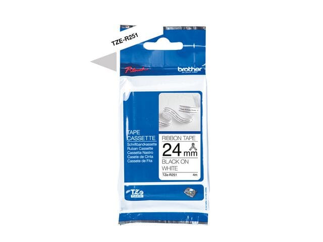 Silkebånd BROTHER TZER251 i sort på hvitt i 24 mm bredde som gir deg et raskt og pålitelig resultat, samt en tydelig og profesjonell utskriftsstandard.
