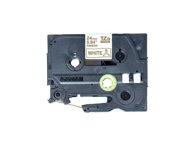 Silkebånd BROTHER TZER254 i gull på hvitt i 24 mm bredde som gir deg et raskt og pålitelig resultat, samt en tydelig og profesjonell utskriftsstandard.