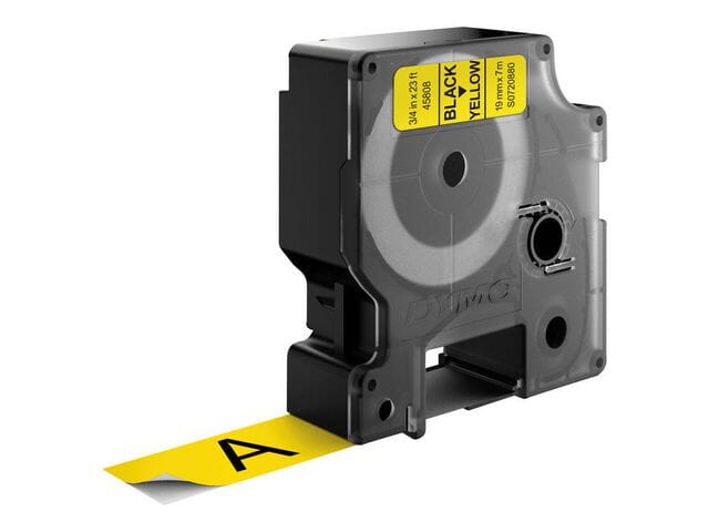 DYMO® D1-etikettkassetten på 19 mm gir stilige, tilpassede etiketter i svart på gult som er enkle og raske å påføre. Velegnet både for innendørs og utendørs bruk. D1-teipene viser tekst som skrives ut ved hjelp av varmeoverføringsteknologi, noe som fjerner behovet for blekk og toner. Alle etiketter er slitesterke og varige siden de er vannbestandige, UV-bestandige og temperaturbestandige mellom –18 og 90 grader celsius. De kleber på nesten alle jevne og rene overflater, inkludert plast, papir, metall, tre og glass. Den selvklebende teipen kan også fjernes for korttidsmerking uten å etterlate limrester.