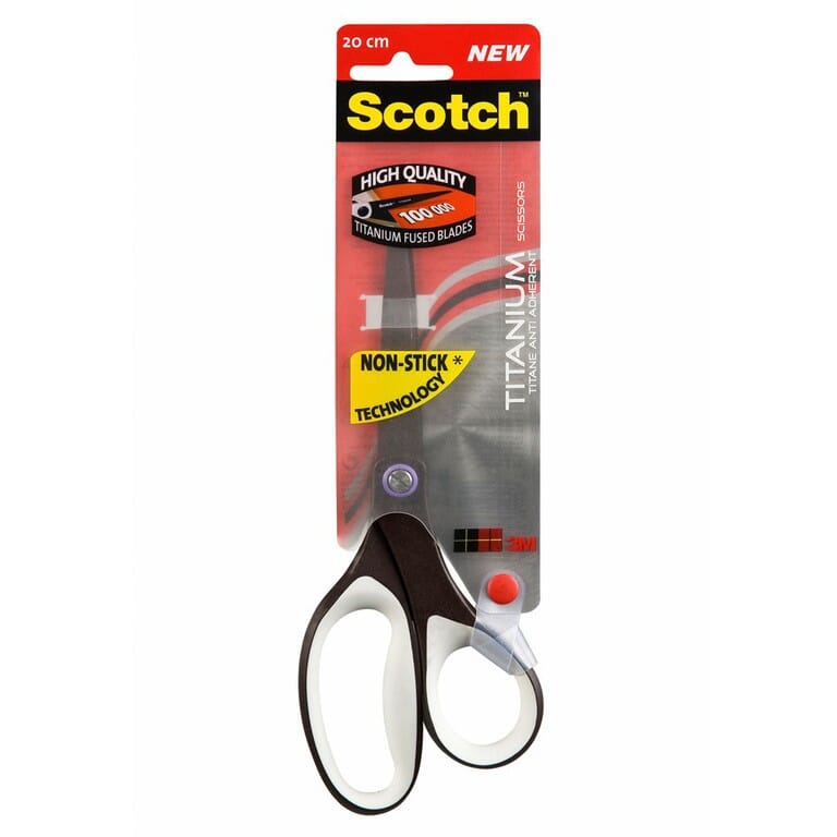 Scotch® sakse – Titanium non-stick, 20cm - Den ultimate saksen - Skarpest kniv med blader av sammensmeltet titanium- 5 x sterkere enn rustfritt stål - Forblir skarp selv etter 100.000 klipp - Klebefri teknologi – du slipper kleberester på knivbladene - Særdeles motstandsdyktig for rust - Justerbar spenningsskrue for ekstra yteevne - Håndtakene er designet til både høyre- og venstrehendte - Ekstra bløde komfortable håndtak - Suveren til stoff, smykker og kartong - Livstidsgaranti