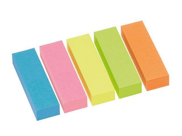 Fargerike bokmerker i neon farger til å markere eller utheve viktig informasjon.