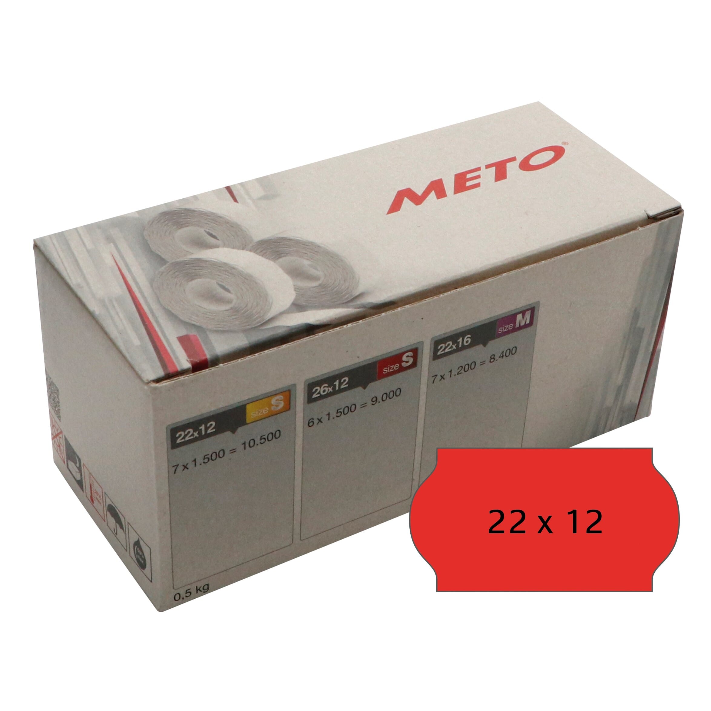 Pris- og datoetiketter fra METO er den ideelle løsningen for profesjonell og presis merking av for eksempel produkter, varer og emballasje hvor nøyaktig informasjon må angis. Etikettstørrelsen er 22x12 mm og etikettene er permanent klebende. De er neonrøde og ideelle å bruke for tilbuds- og rabattmerking og annen iøynefallende informasjon. METOs prislapper med varenr. 9006890 passer for alle standard 1-linjers håndholdte prismaskiner med etikettstørrelse 22x12 mm. De har universelle mål og UTC (universal transport cut), som sikrer stabil levering. De er kompatible med METO Eagle og ProLine prispistoler samt prispistoler fra Avery, Contact, Blitz, Tovel, Open, Sato, Etimark, Samark, Jolly, Herlitz, Prix etc. De har relativt høy klebeevne på de fleste overflater og er godkjent for direkte kontakt med tørre eller fuktige, ikke-fettete matvarer (ISEGA-godkjent). Limet er vanskelig å fjerne fra produktet og sikrer dermed mot at kunden endrer etiketten. Som en generell regel kan etikettene ikke fjernes uten å gå i stykker.