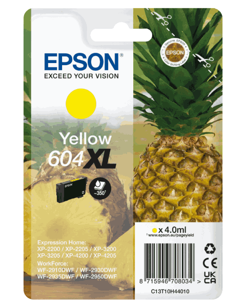 T604XL Yellow Blekk for Epson Expression Home XP-2200, XP-2205, XP-3200, XP-3205, XP-4200, XP-4205 og WorkForce WF-2910DWF, WF-2930DWF, WF-2935DWF, WF-2950DWF