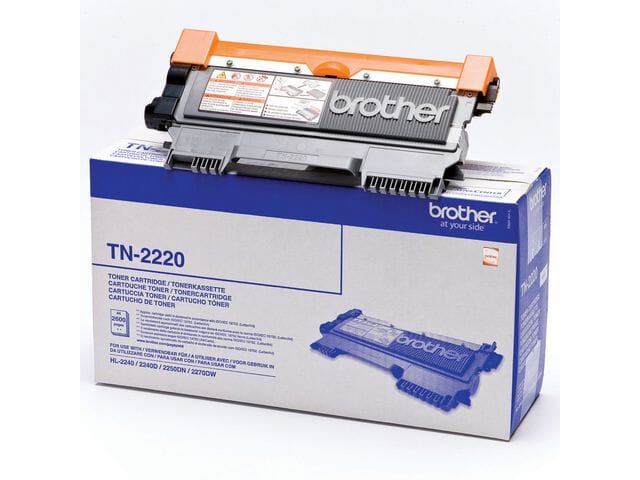 Denne Brother TN-2220-toneren gir skarp svart tekst og sikrer at du alltid får høy utskriftskvalitet med din Brother-laserskriver.