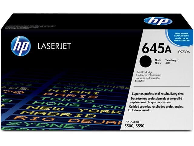 Denne svarte HP 645A-tonerkassetten gir skarpe, profesjonelle og effektive utskriftsresultater med pålitelig ytelse