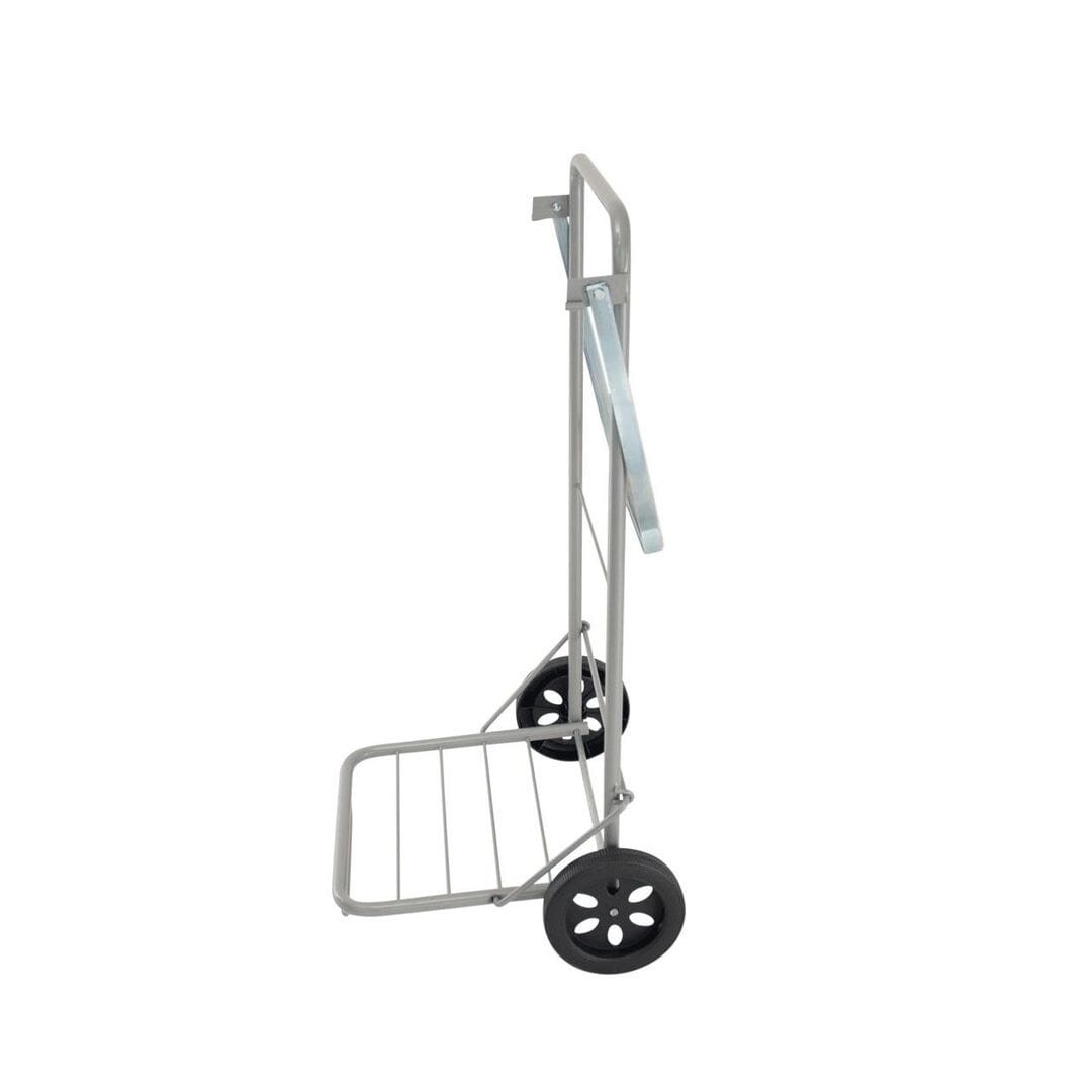 Sokkelen står 10 cm fra gulvet. Stativet er sammenleggbar med plattform som sekken står på slik at den ikke slepes i gulvet.