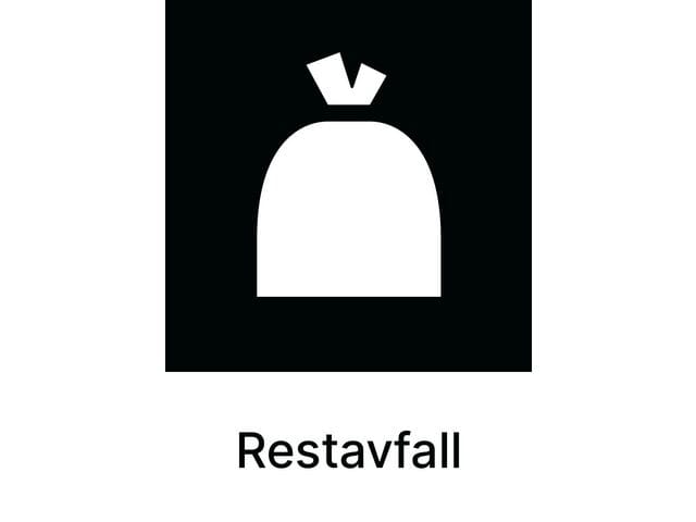 Etikett i PVC materiale med screentrykk og permanent lim. Kan brukes på innendørs og utendørs avfallsbeholdere.