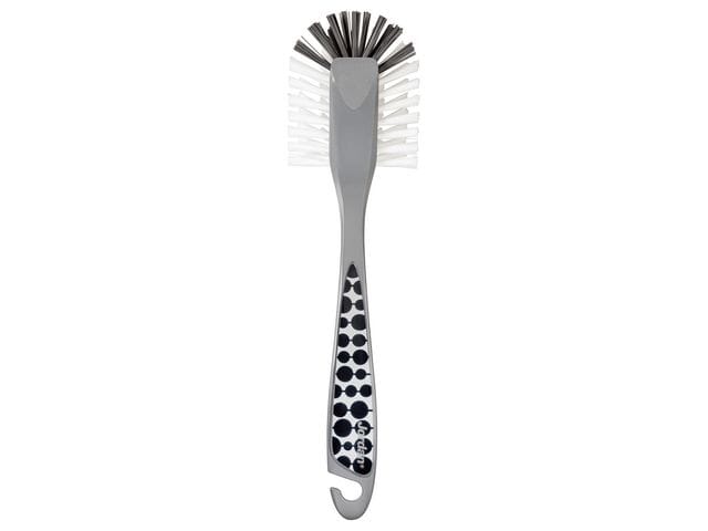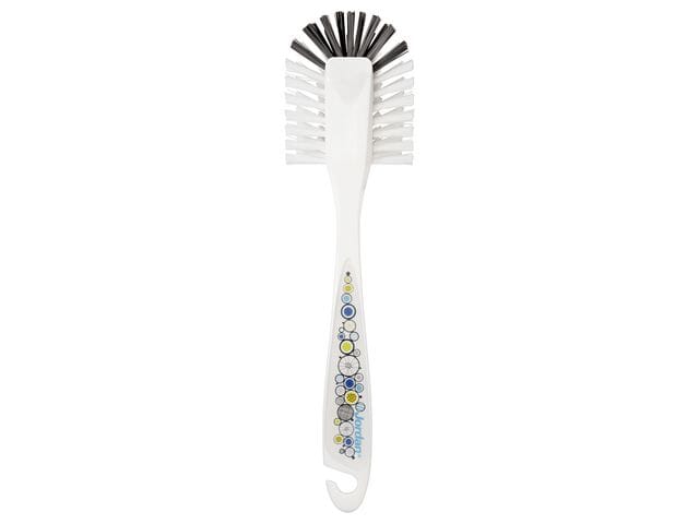 Børsten har halvrundt børstehode som gjør det enkelt å komme til overalt, og skrapekant til grovere vask.