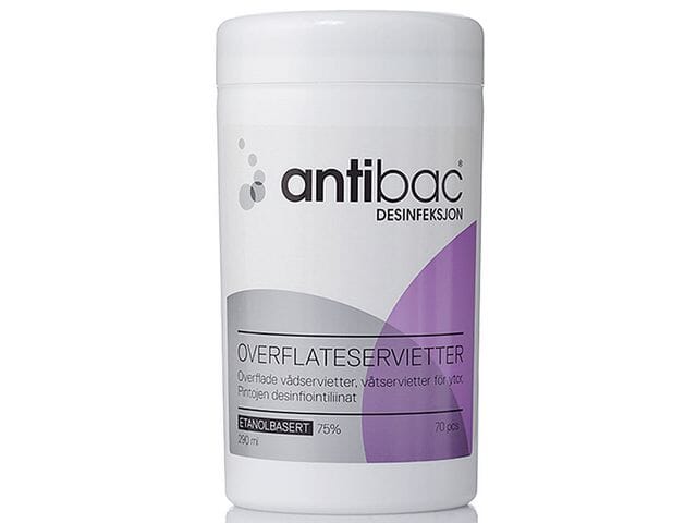 Våtservietter for jevn desinfeksjon av små flater