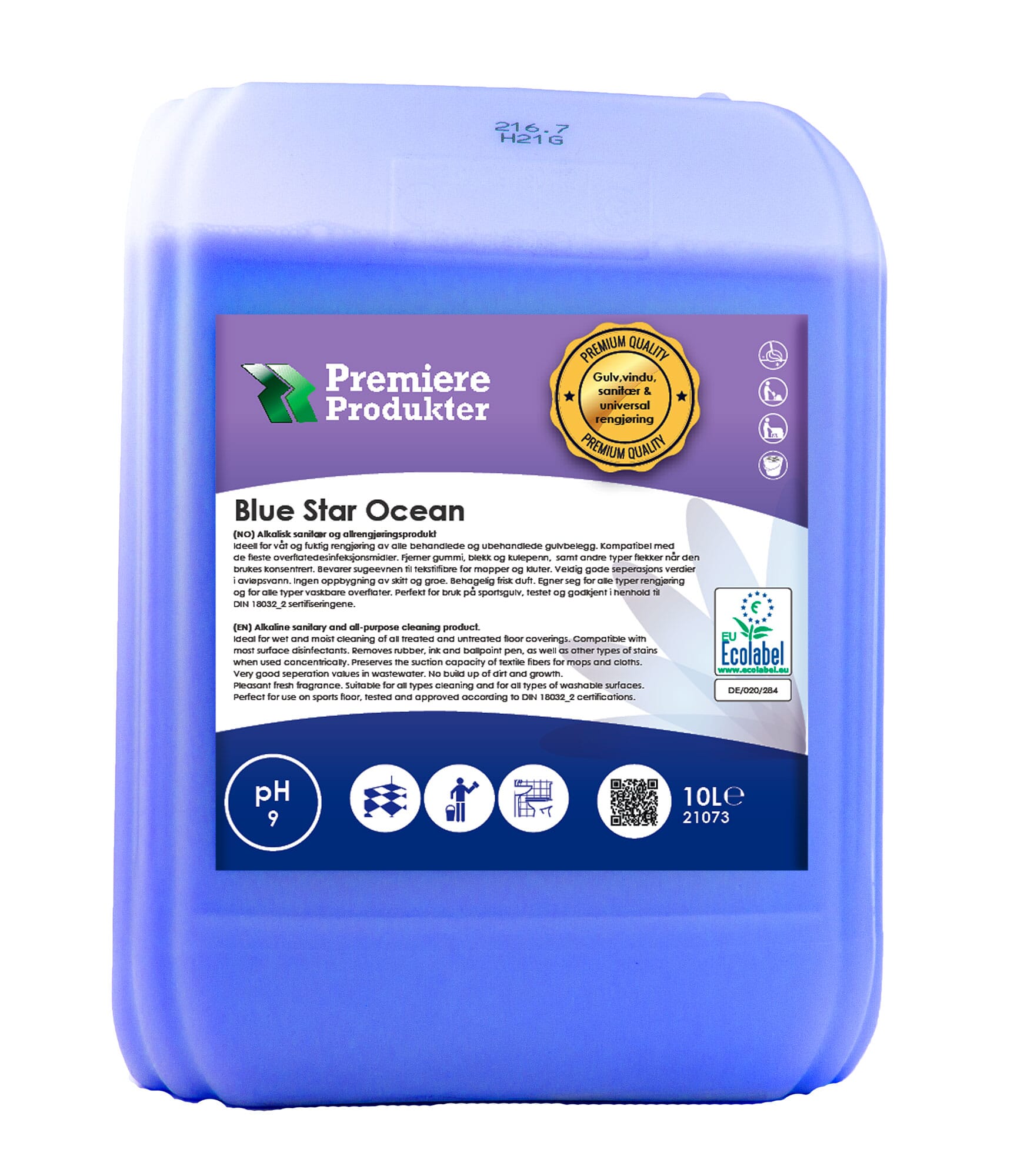 påvirke og endre gulvets friksjon ved bruk av et ikke godkjente rengjøringsmiddel. Blue Star Ocean er godkjent etter DIN 18032-02